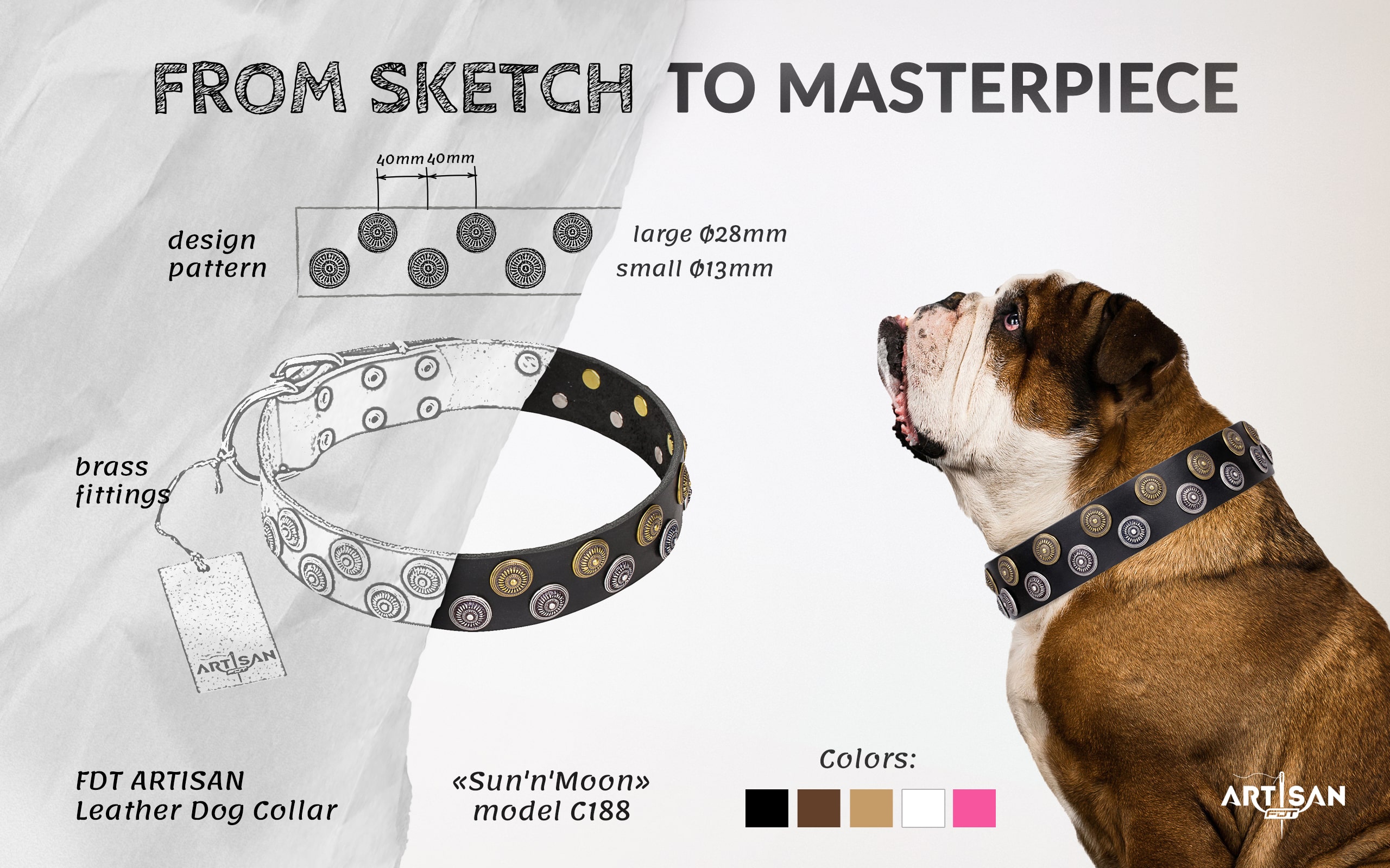 Sun'n'Moon Collection Handmade Black Leather Dog Collar with Studs