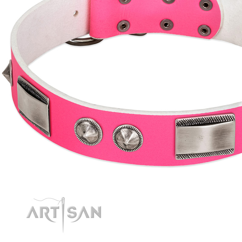 Best FDT Artisan Pink Leather Dog Collar for Walking with Your Lovely Dog