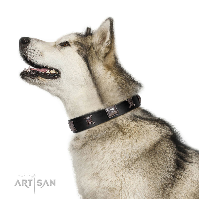 Leather Malamute Collar with Rust Resistant Adornments for Daily Use