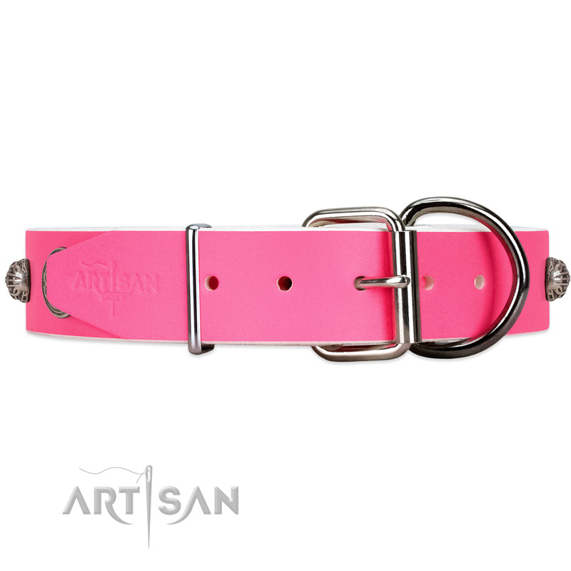 Daily use FDT Artisan pink leather dog collar for reliable walks