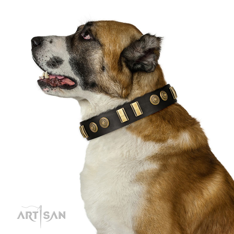 Central Asian Shepherd dog collar of awesome quality leather for comfortable wearing