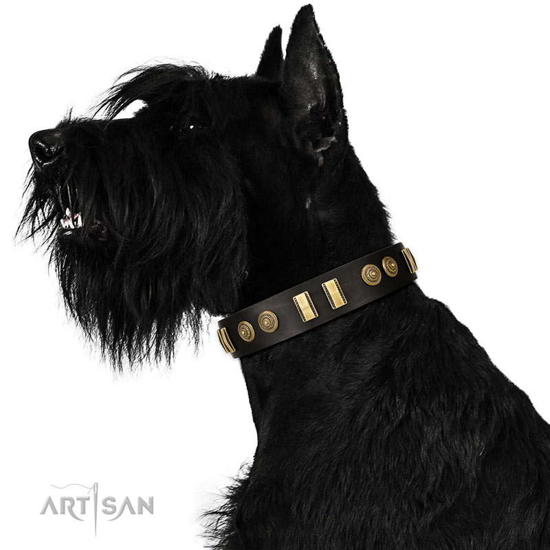 Reisenschnauzer dog collar of top notch quality genuine leather for stylish walking