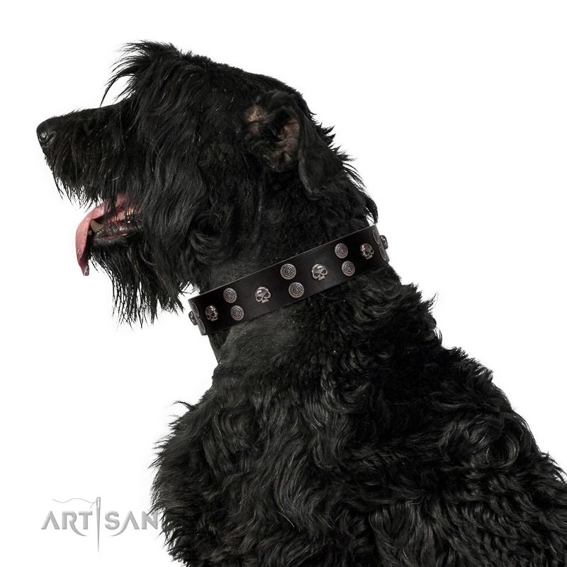 Premium quality black leather Black Russian Terrier collar for daily walks