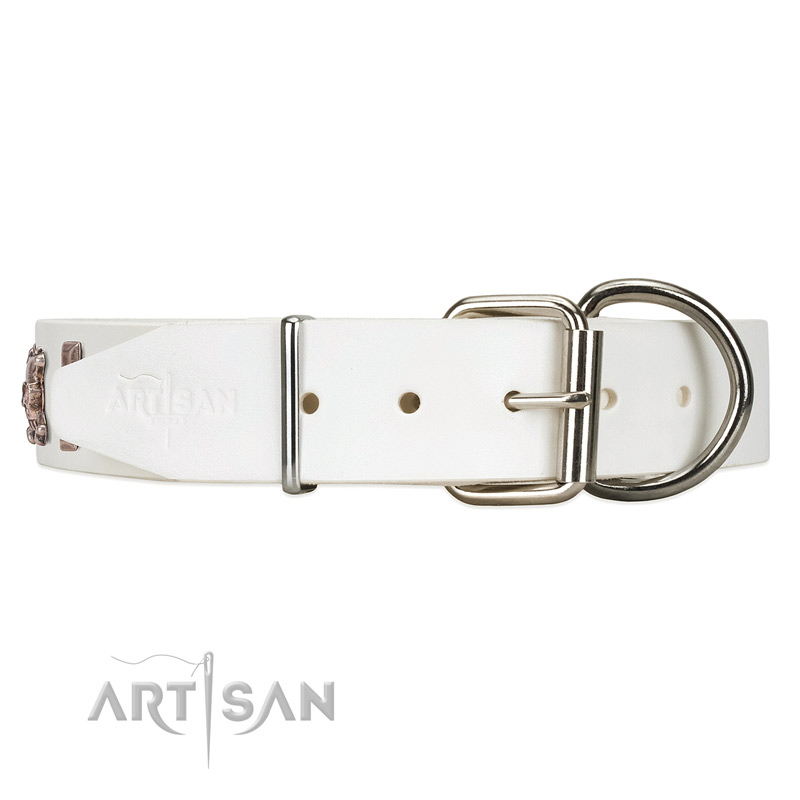 Fashionable white leather Black Russian Terrier collar for stylish walks