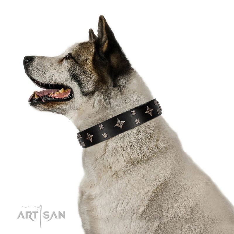Dressy black leather Akita Inu collar from FDT Artisan