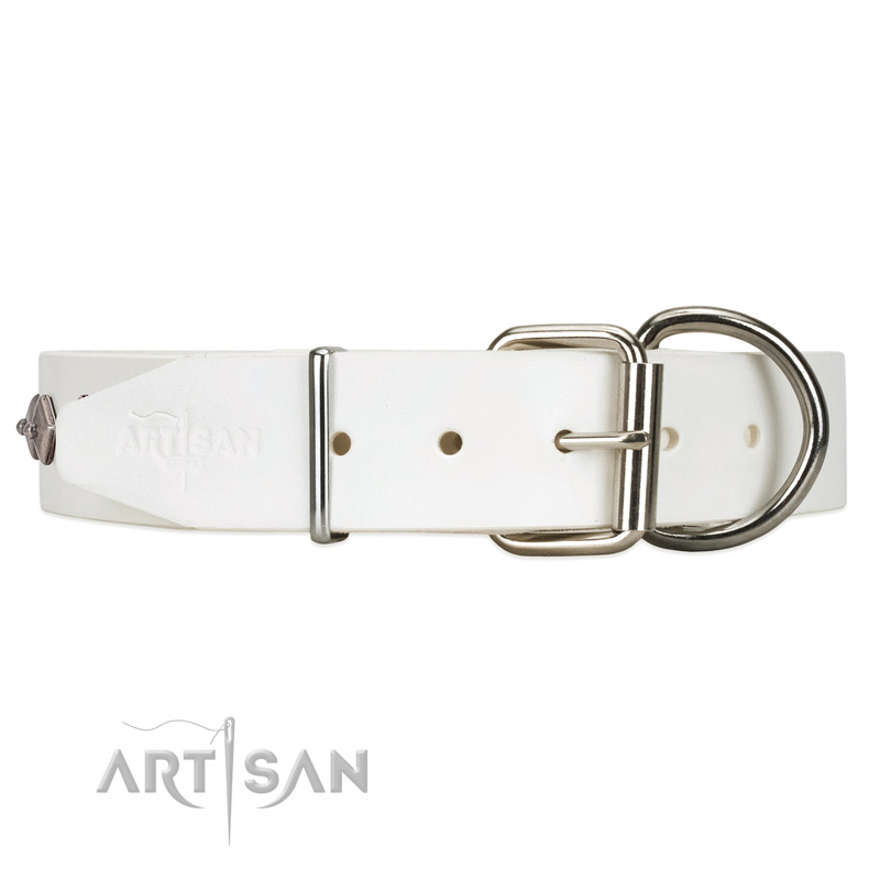 FDT Artisan White Leather Dog Collar for Stylish Walks