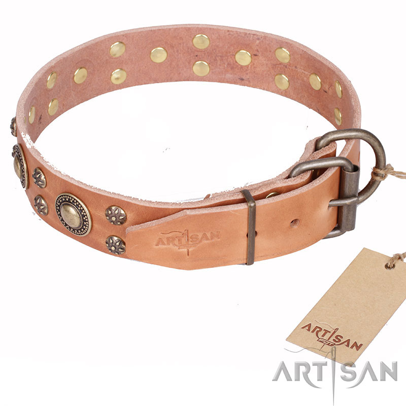 Natural Leather Dog Collar with Beautiful Decor