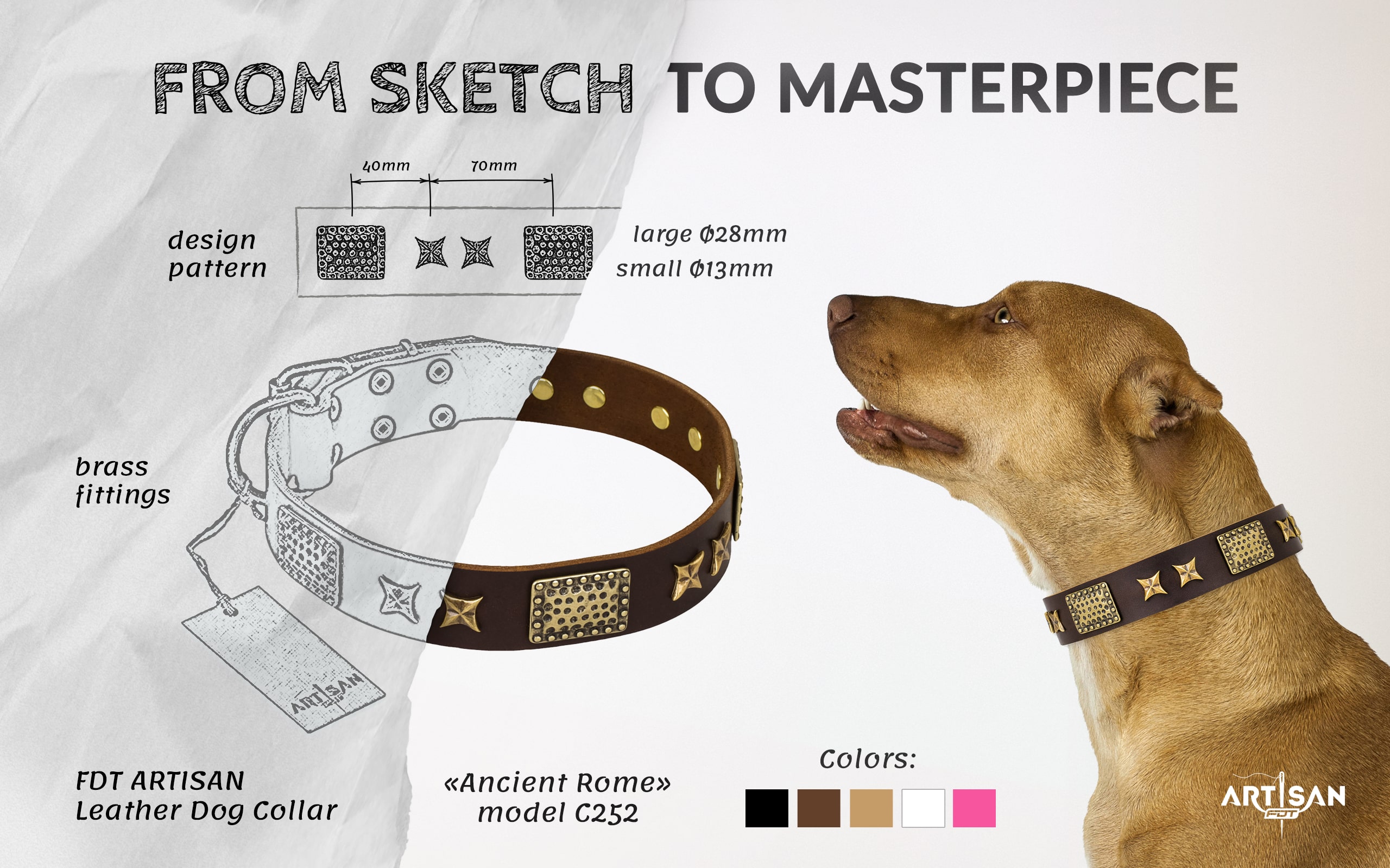 Ancient Rome Collection Handmade Brown Leather Dog Collar with Studs
