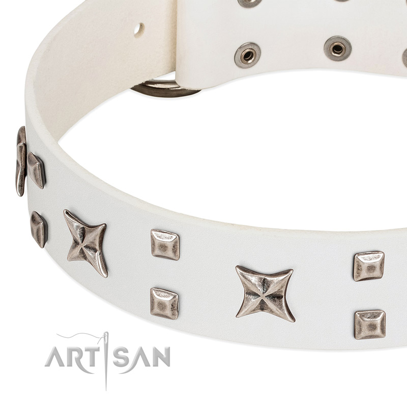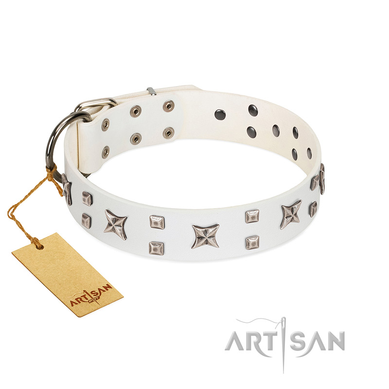 Handcrafted white leather dog collar with superior design