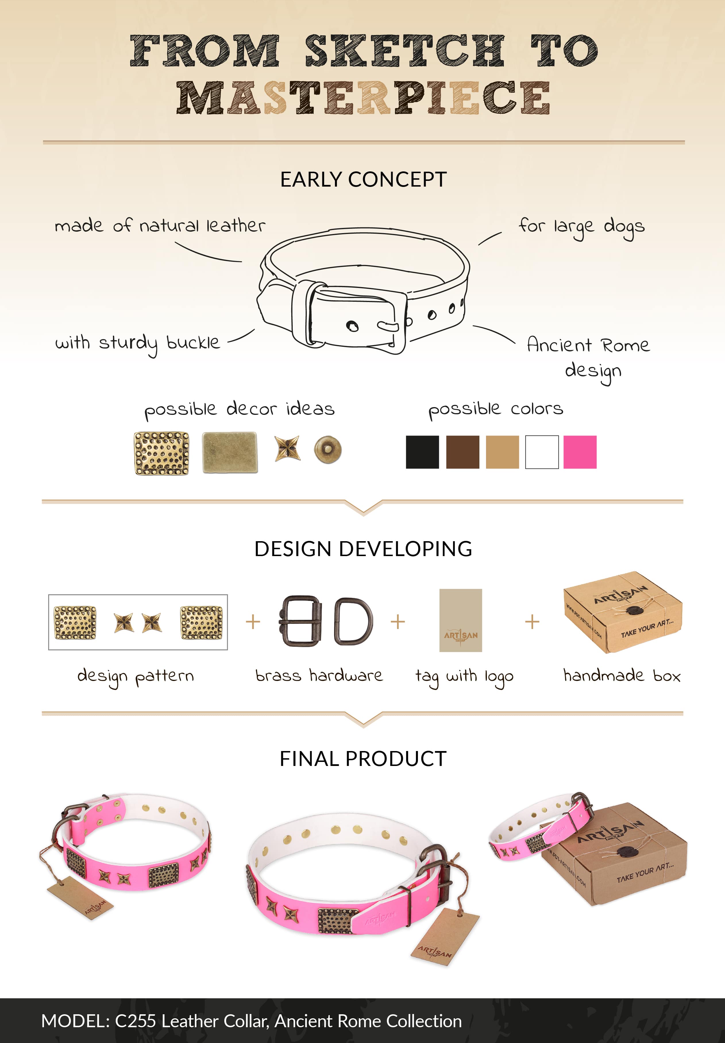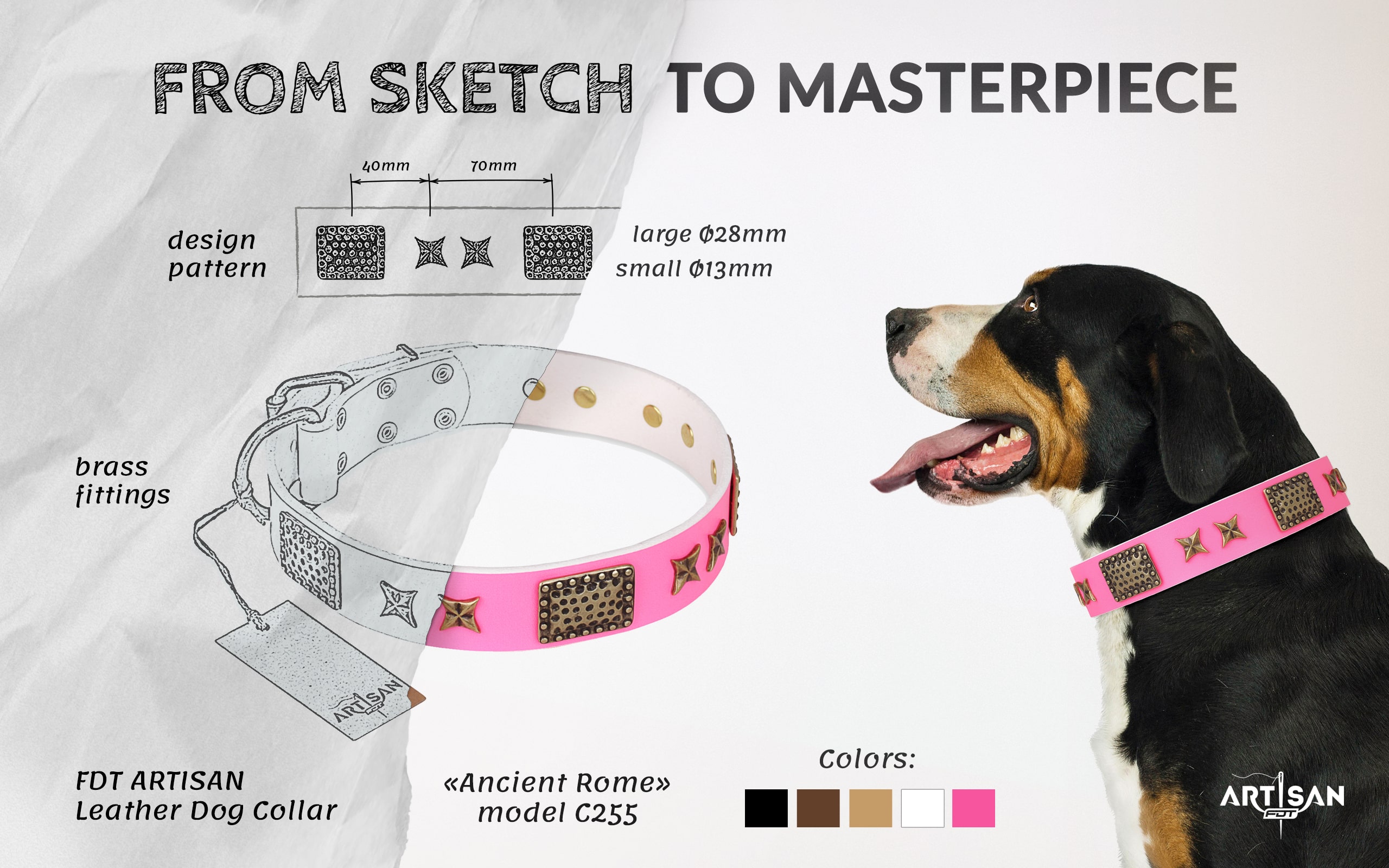 Ancient Rome Collection Handmade Pink Leather Dog Collar with Studs