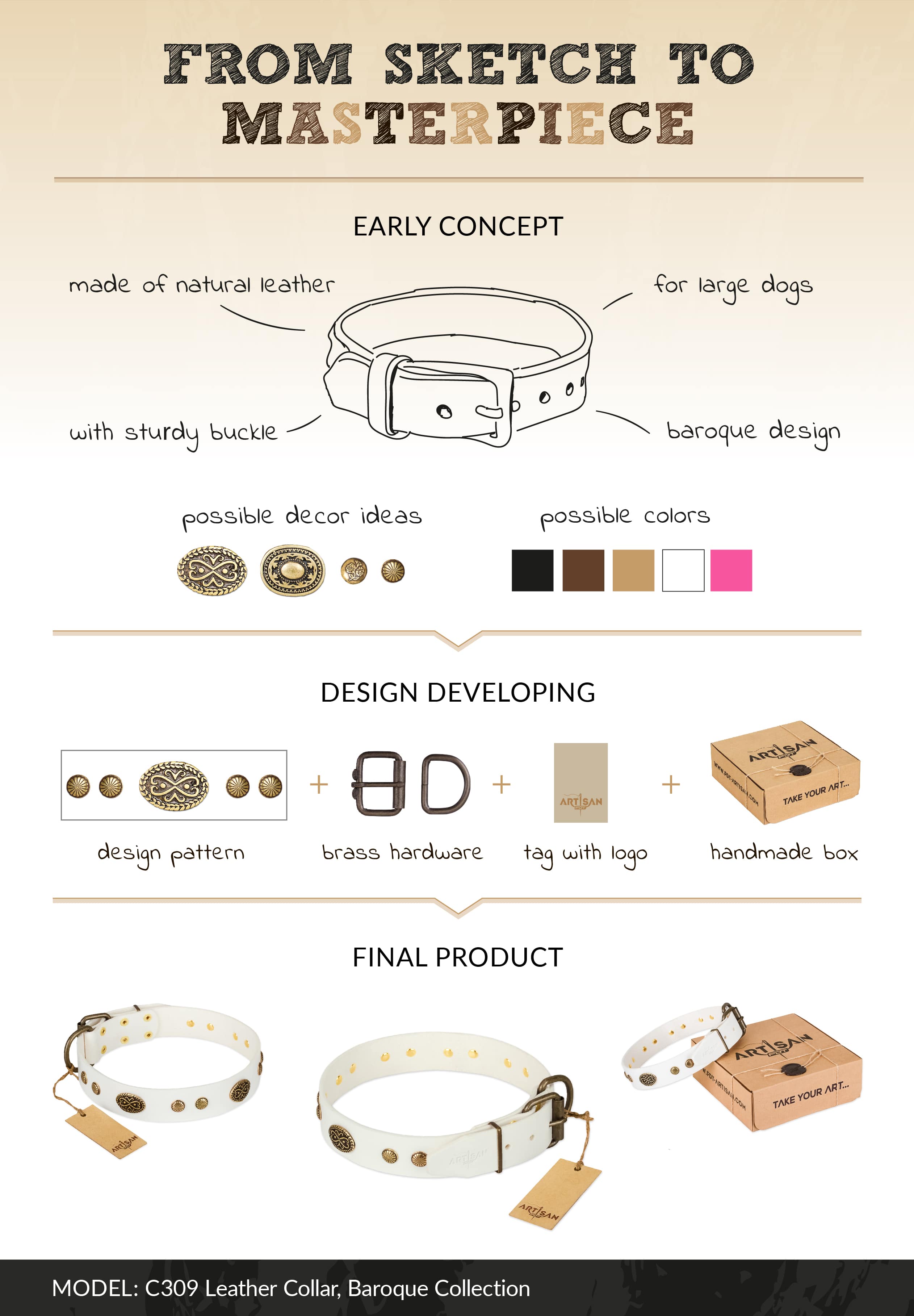 Baroque Collection Handmade White Leather Dog Collar with Studs