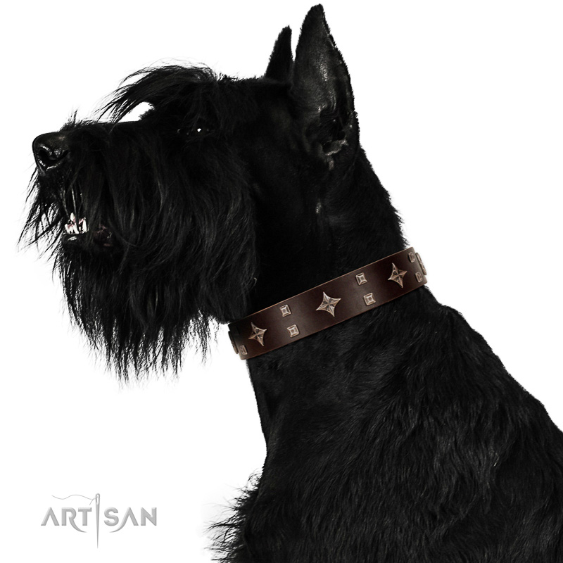 Unique brown leather Riesenschnauzer collar from FDT Artisan