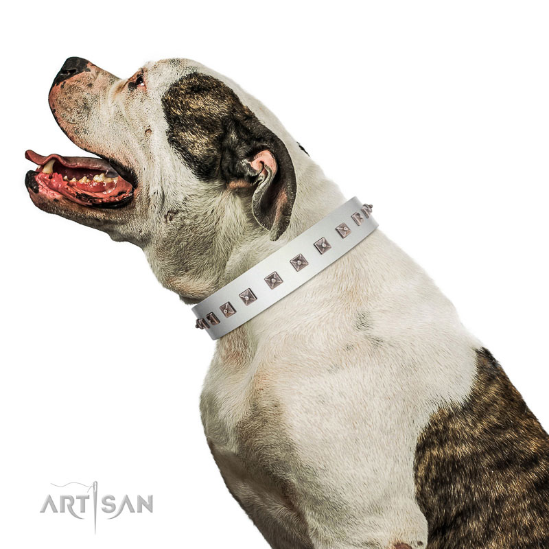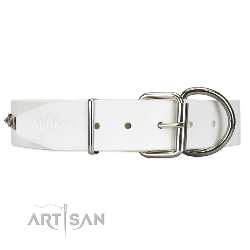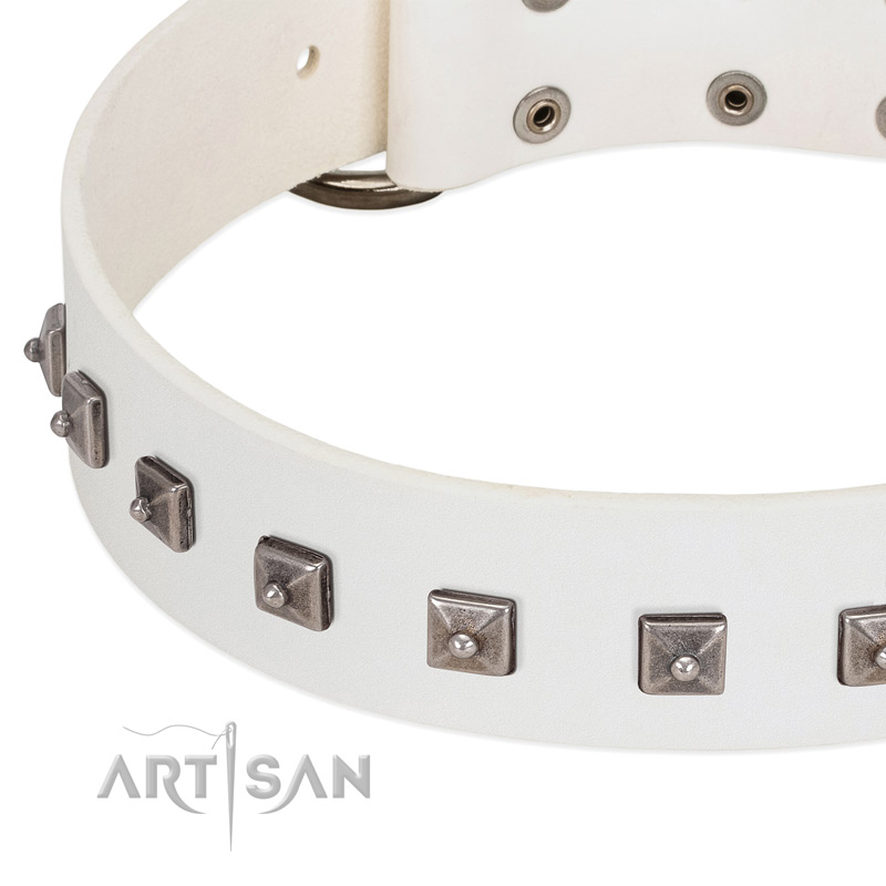 FDT Artisan White Leather Dog Collar will meet all these requirements and will become your canine's favorite one! This special gear offers your four-legged friend great protection during his activities. The canine stays securely collared and can’t slip off or tear the gear. Be unique with this