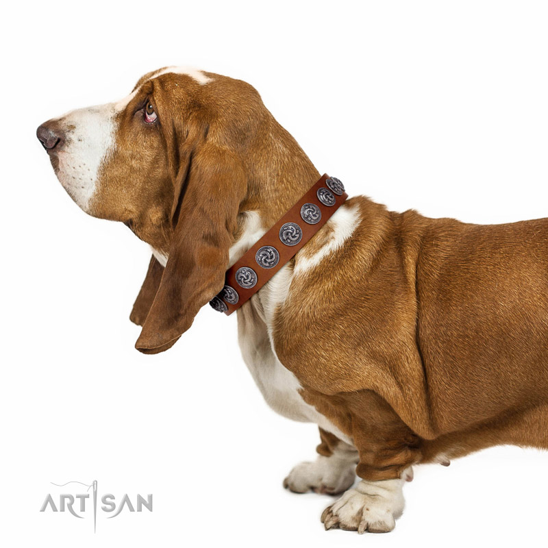 Chic-looking FDT Artisan Basset Hound Collar for Daily Walks and Special Occasions