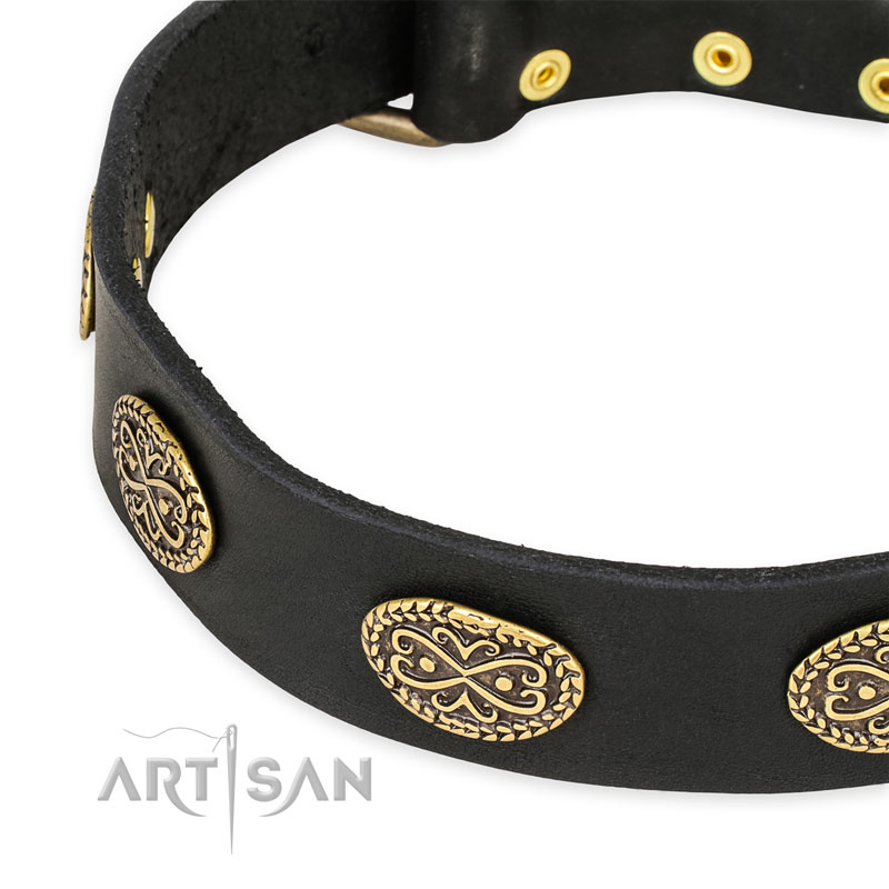 FDT Artisan Black Leather Dog Collar with Old Bronze Look Decorations