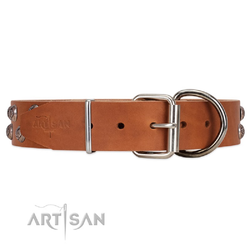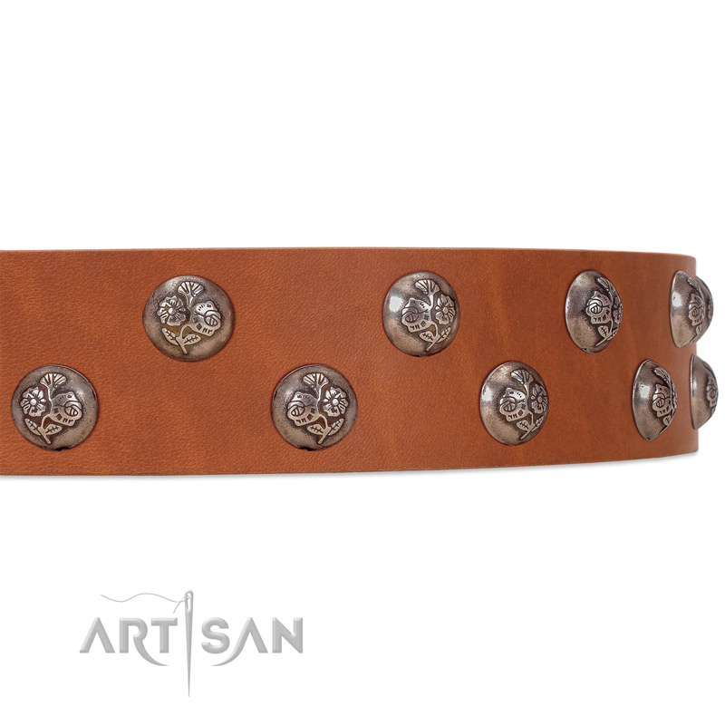 Embellished Tan Leather Dog Collar for Noble Canine Look