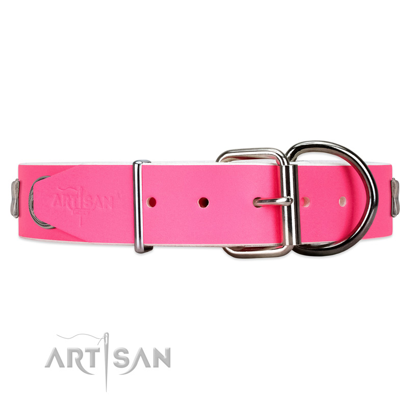 Daily use FDT Artisan pink leather dog collar for walks