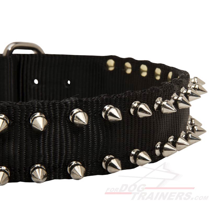 Order this Spiked Black Nylon Dog Collar of inimitable beauty and great durability. Your pet can wear it at any weather and the gear will stay like new for ages!