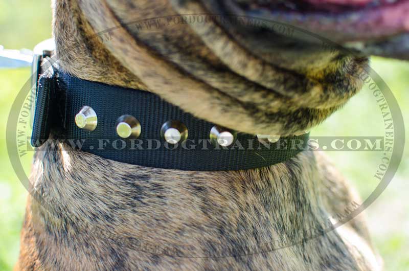 Cane Corso Nylon Collar with Shiny Nickel Pyramids