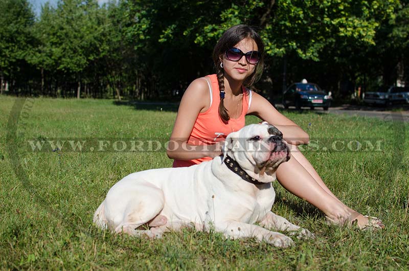 Decide in Favor of American Bulldog Walking Collar with Pyramids