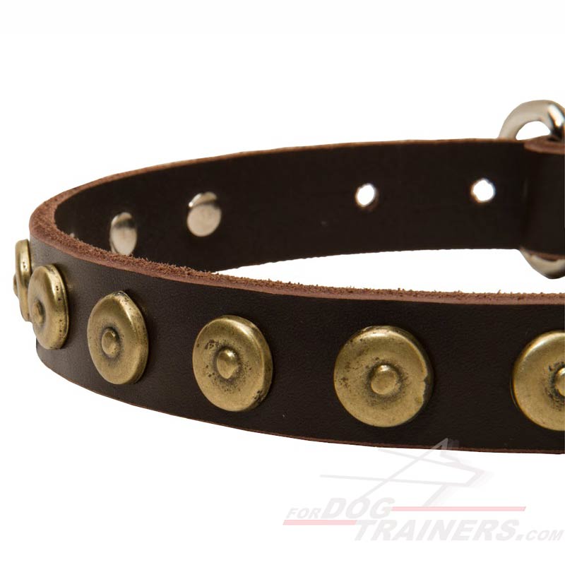 Order arrived today. I love the dog collar decorated, very nice, good fit. I also love the leather short-lead, lovely, good construction.