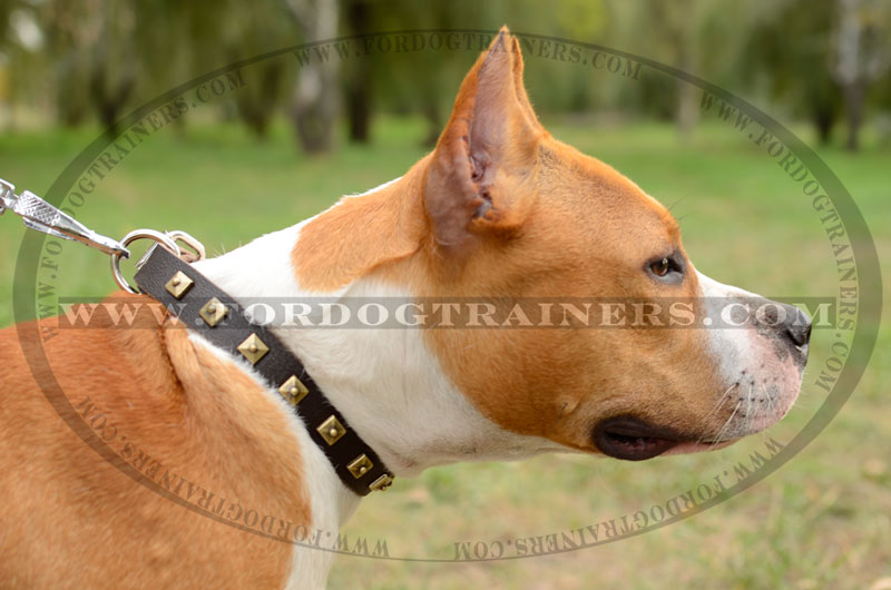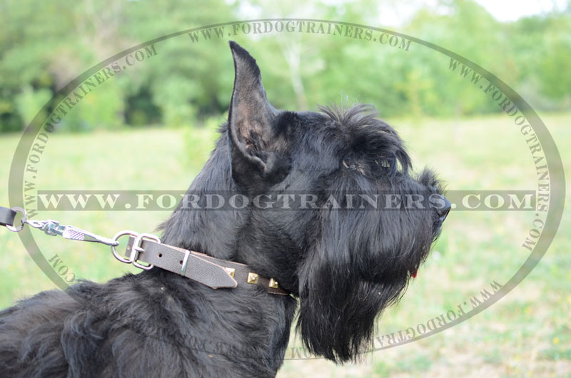 Our designers decorate this Leather Collar with one row of brass studs. But we also care about collar's quality, that's why each stud is reliably hand set with rivet and won't fall out for years. This Fantastic Leather Collar is available in three colors - black, brown and tan, so you may easily choose any of them, according to your preference and dog's color.