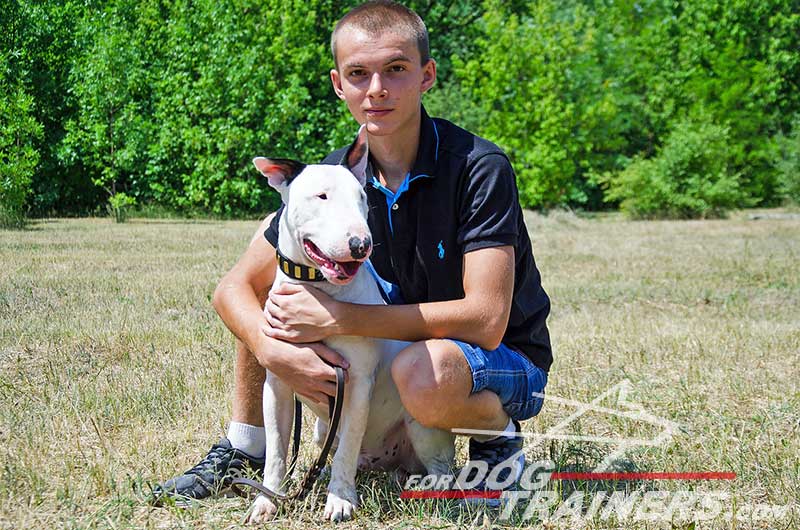 Walking Dog Collar for Bull Terrier with Stylish Brass Plates