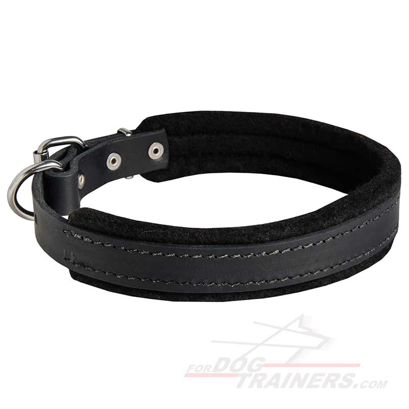 Leather dog collar padded with thick felt for maximum dog comfort.Good for agitation work.