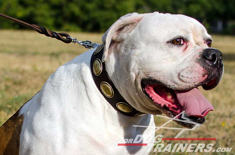 Leather Dog Collar for American Bulldog Daily Walking