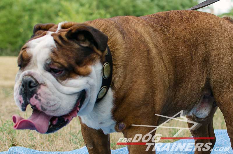 Plated Leather Dog Collar for English Bulldog