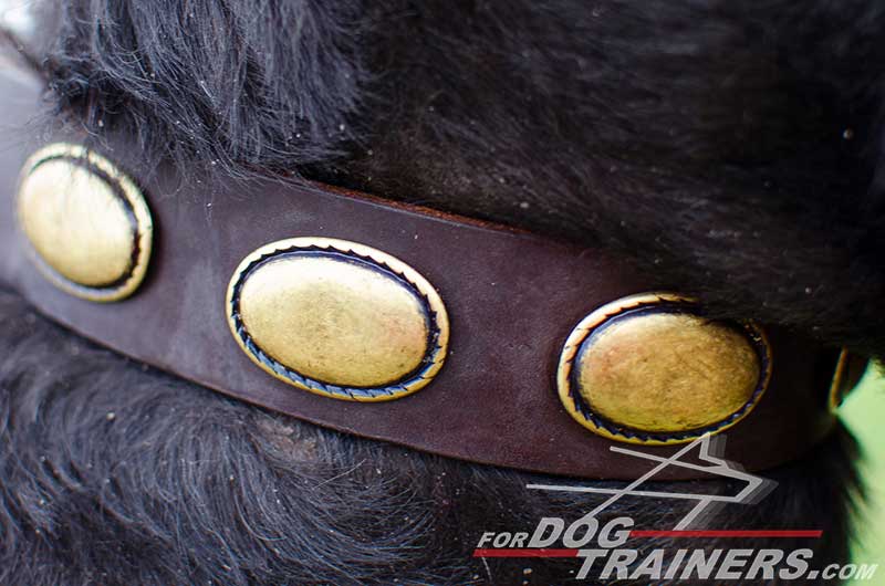 | Key features of this Dog Collar: - Large oval brass plates