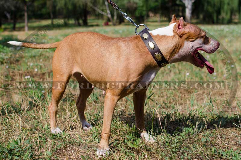 Stylish Dog Collar Leather for Amstaff Walking