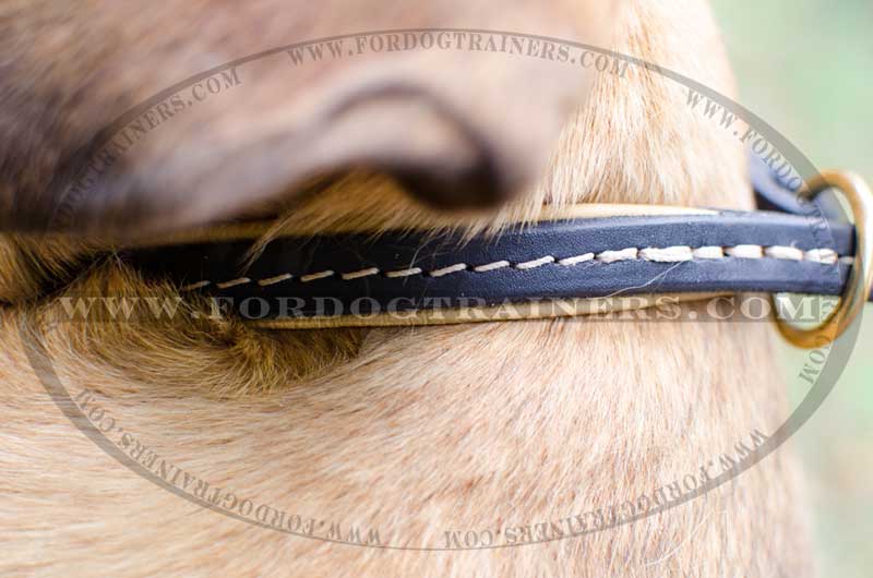 High level of comfort. If properly fitted, your dog will feel pretty comfy in this collar. Your task in to make correct measurement. The Collar is light weight and your dog may even forget about wearing it at all. Brass rings look like golden ones. Don't miss your chance to buy such Stunning Leather Collar for your pet!