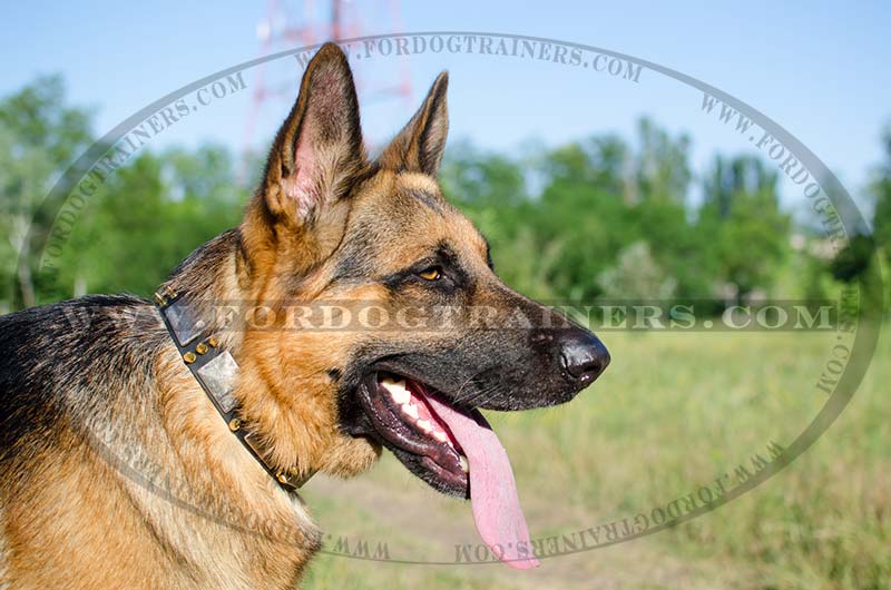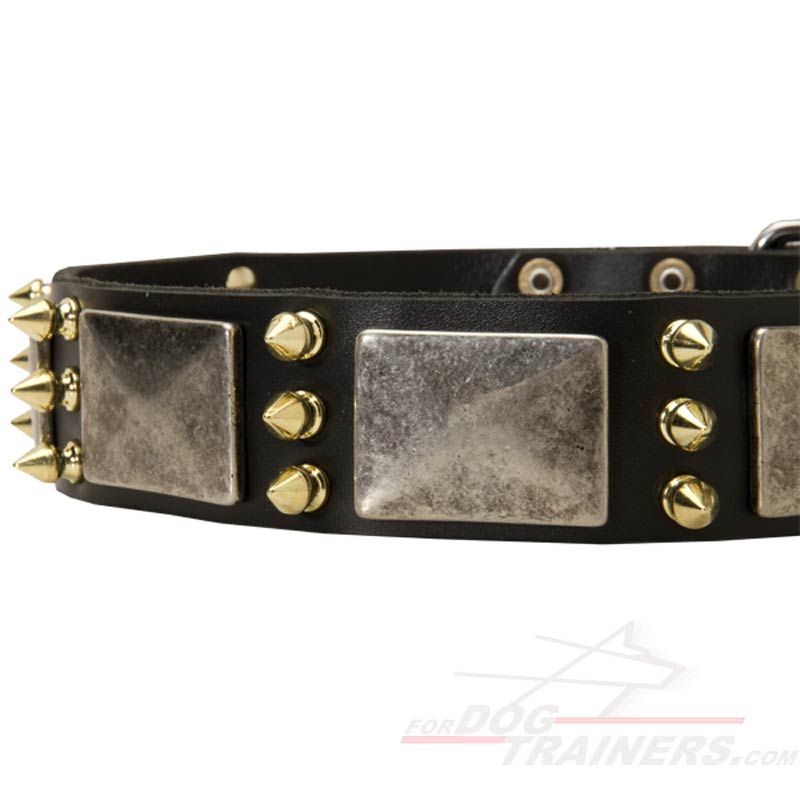 German Shepherd Leather Dog Collar with Riveted Spikes and Plates