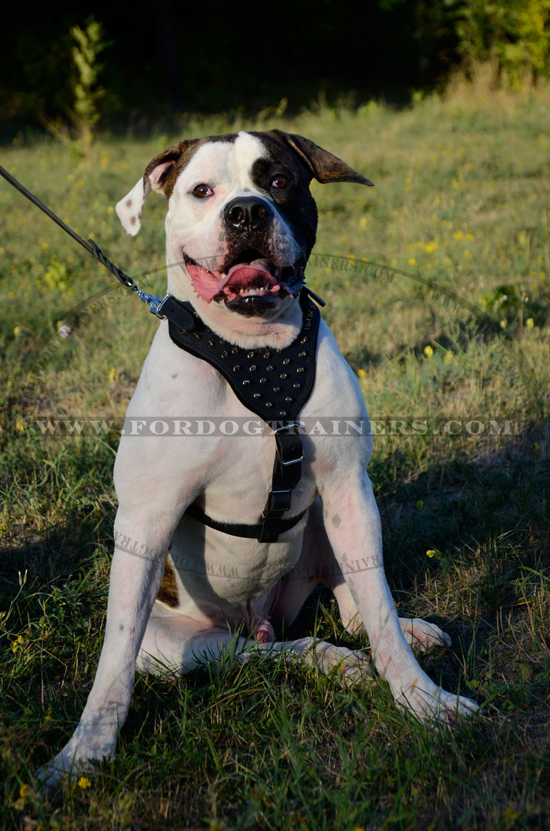 Spiked Leather Harness for American Bulldogs and Other Large Breed Dogs