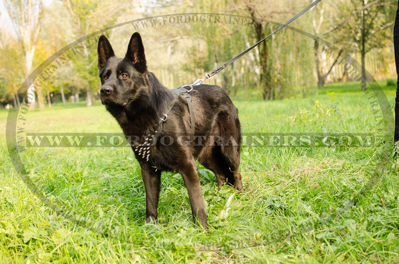 Adjustable Spiked Leather Harness for Riesenschnauzer ans Other Large Breeds