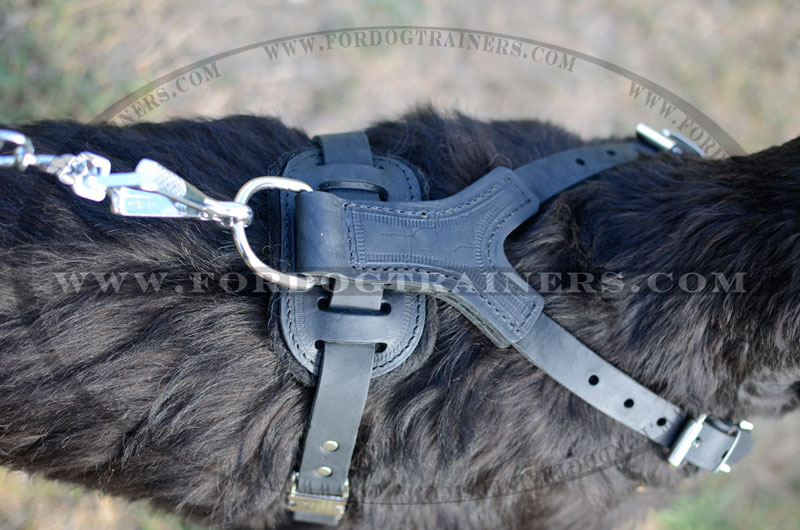 - Besides, this harness is extremely comfortable as the back and chest plates are padded with soft thick felt. It protects your dog’s skin from rubbing and irritation and provides pleasant wearing while your dog is harnessed.
