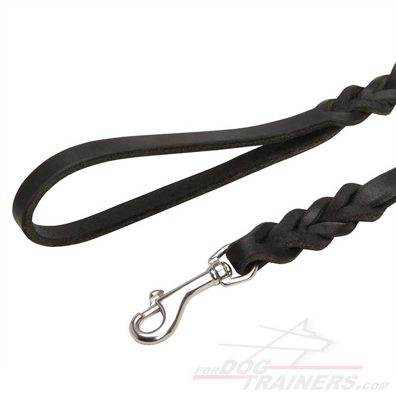 This dog leash is of incomparable quality. Only the best quality materials are used for the creation of this unique dog gear. First of all, it is made of 100% full grain genuine leather that ensures the long-lasting service of the item. This type of leather is very popular nowadays on the dog supplies market as it is very strong, flexible and soft to the touch. The softness of the leash is very important for the handler as he must be confident that his palms will be in safety while walking the dog.