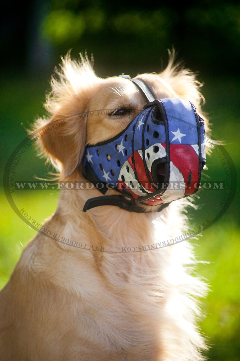 Looking for something unusual but at the same time durable that will suit both for training and walking? Order now our "American Flag" Painted Leather Dog Muzzle.