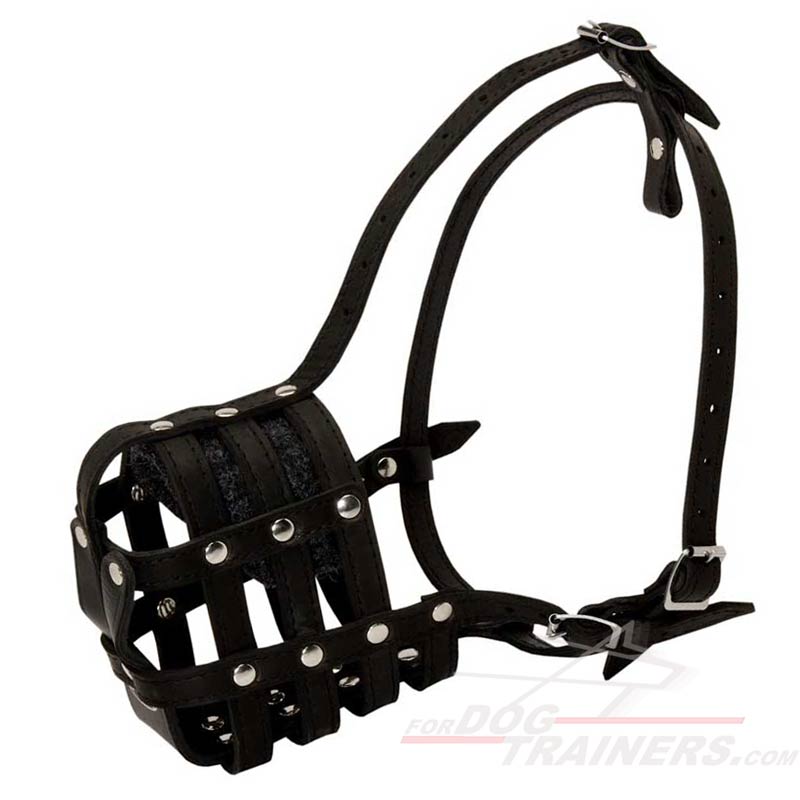 This muzzle doesn't stick to a dog's snout in winter and will not reflect excessive sunlight. The upper nose part is padded with thick felt for maximum comfort and to prevent skin rubbing.