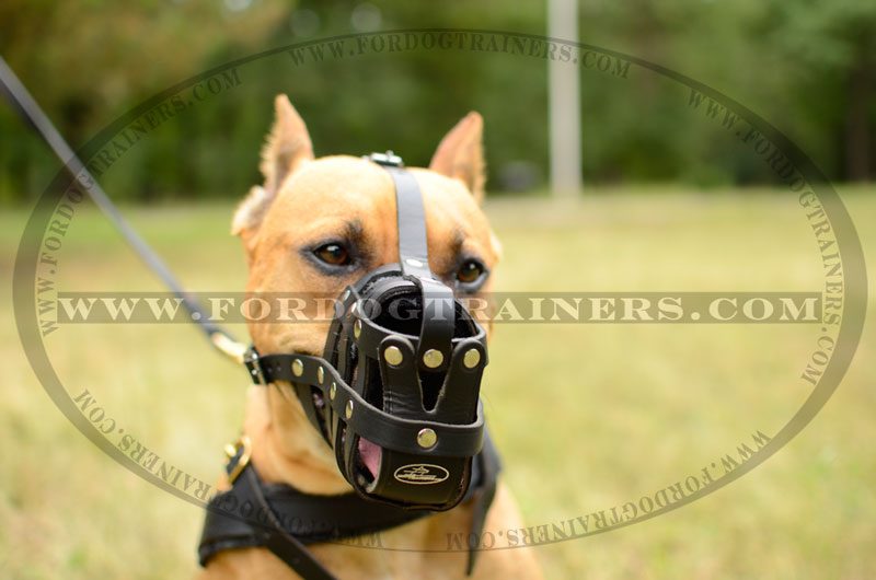 Durable Leather Basket Pitbull Muzzle for Daily Walking
