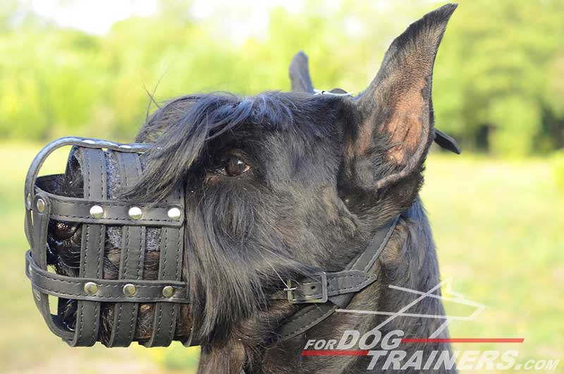 Padded Leather Basket Muzzle for Riesenschnauzer