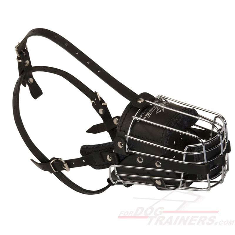 There are leather inlayers inside the cage. Upper snout part of the muzzle is padded with soft felt for extra comfort of your dog. The straps are also made of genuine leather that’s why they won’t stretch or get worn out in time. Leather parts are stitched and fixed to the cage with rivets for extra strength of this muzzle.