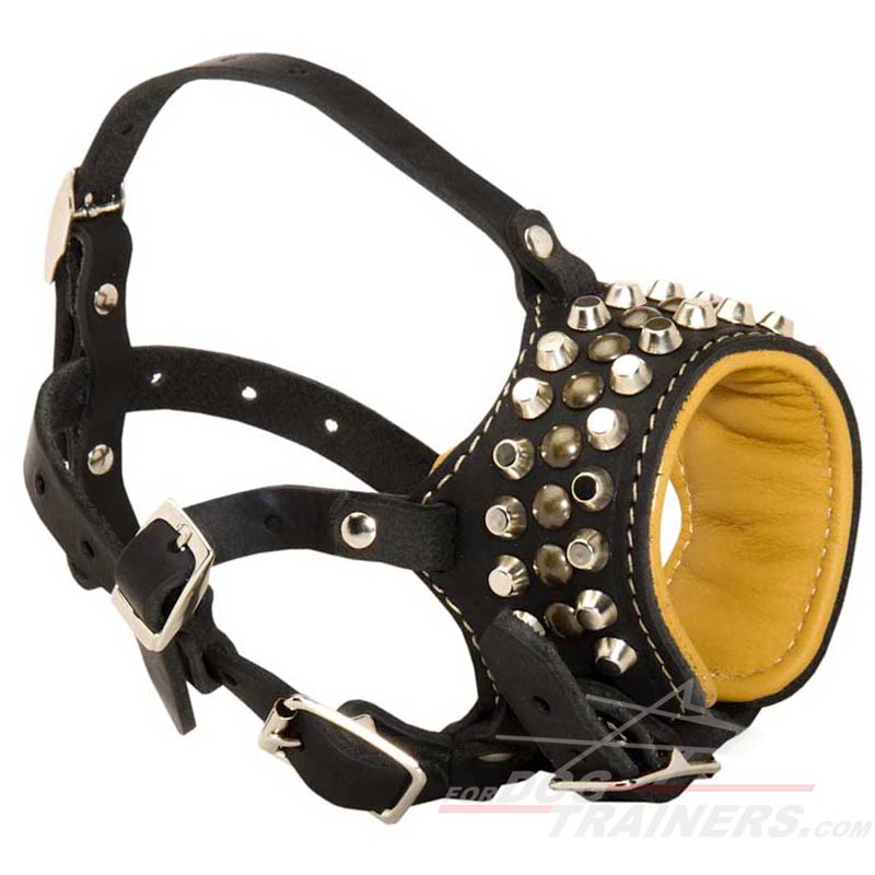 Do you want to have stylish leather muzzle? We would like to offer you our Royal Pyramids and Studs Dog Muzzle.