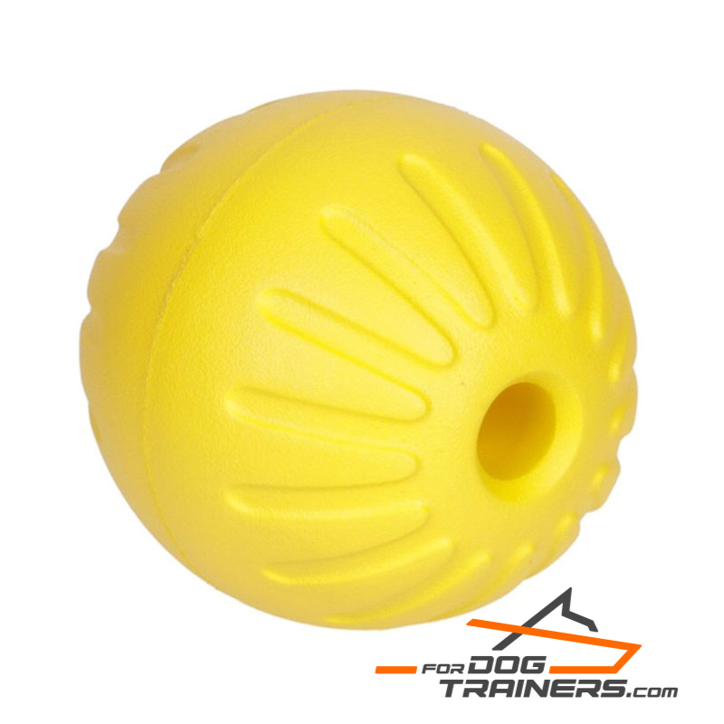 This floatable yellow hardball is highly indestructible for dogs