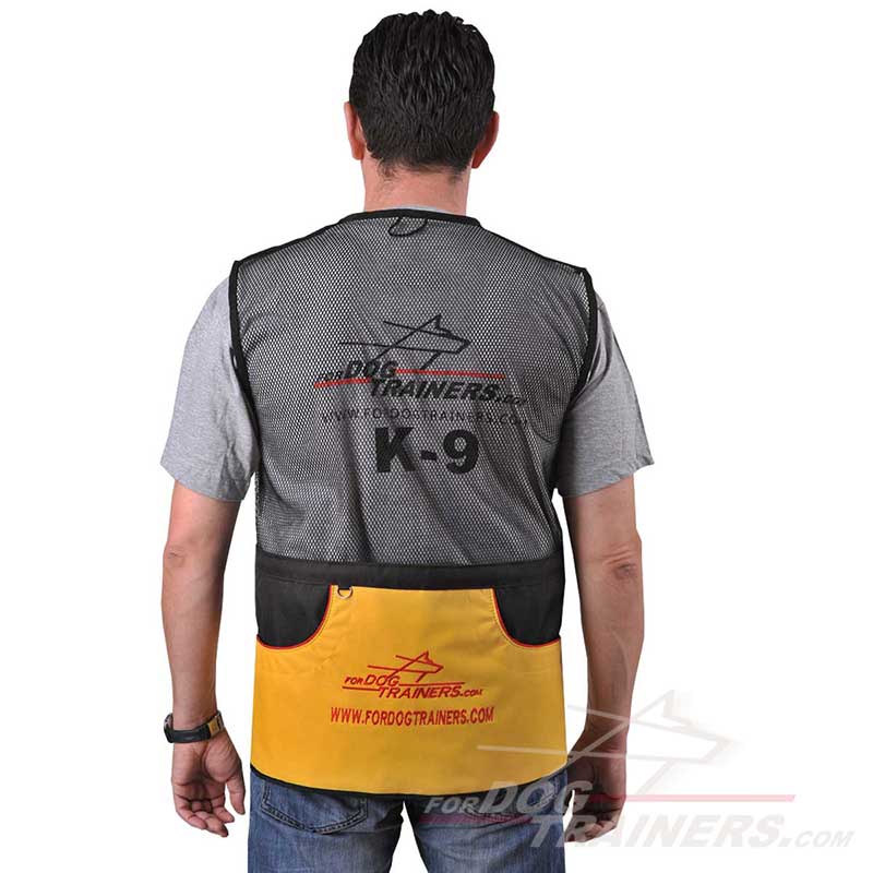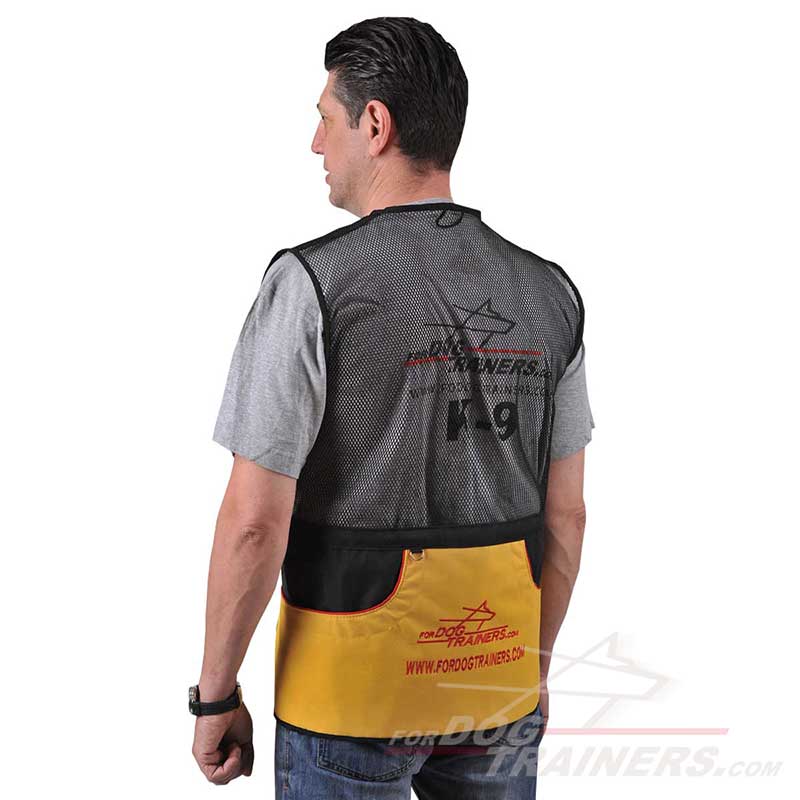 The back top of this vest is made of durable mesh perfectly ventilated in warm weather training. The back large pouch pocket is lined for extra durability and safety.