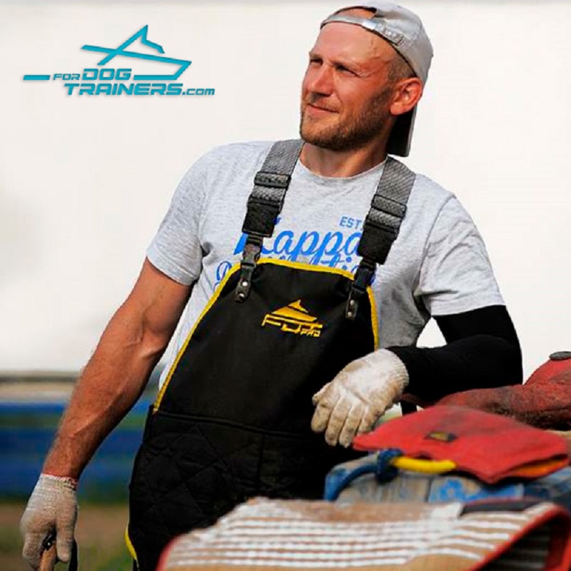 The Apron-Jumpsuit is quite lightweight and is recommended for warm weather use. Durable nylon will protect your body and clothes from scratches and dirt. The extraordinary design provides the helper with maximum mobility. Now you don't have to think about your movements. Now you will think only about the training process and concentrate on your dog.