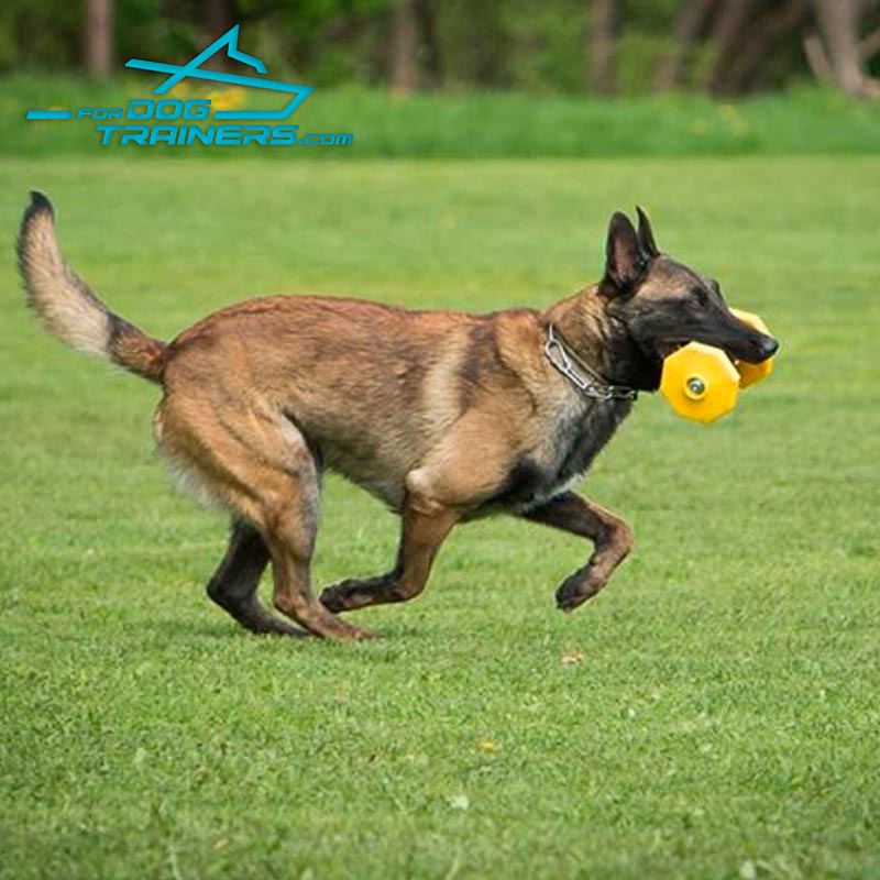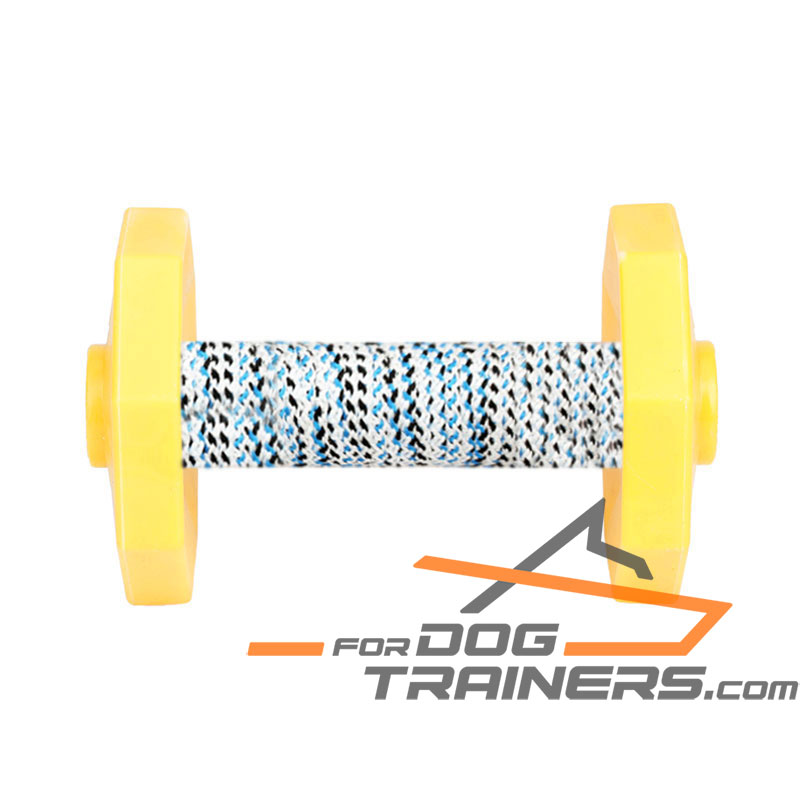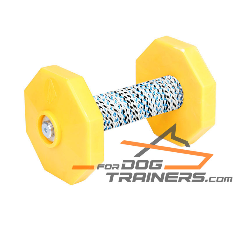 Furthermore, this dumbbell is ideal for retrieve activities. Being made of bright yellow plastic, it is highly visible. Thus, your dog will easily find it even in the grass. This supply consists of a dowel and weight plates on both sides, which are reliably attached to the item. Your dog can hold the dumbbell firmly, he won't hit his nose when picking it up from the ground. Plastic used for the production of the item is very sturdy. It
