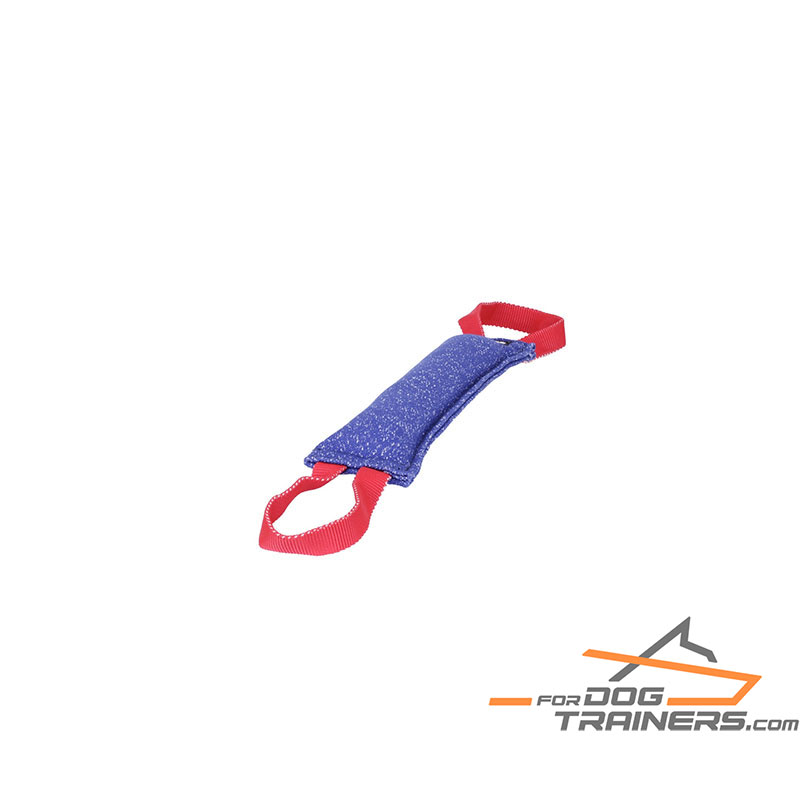 This bite tug is manufactured of French Linen which is known to be the world’s strongest natural fiber. The material is very thick that contributes to strength and longevity. The bite tug produced of this fabric lasts a very long time. So, be sure that the item will stand bites of your canine and will be your reliable training assistant for a long period of time.
