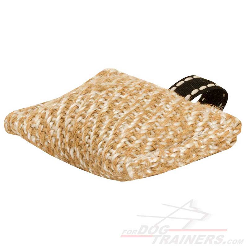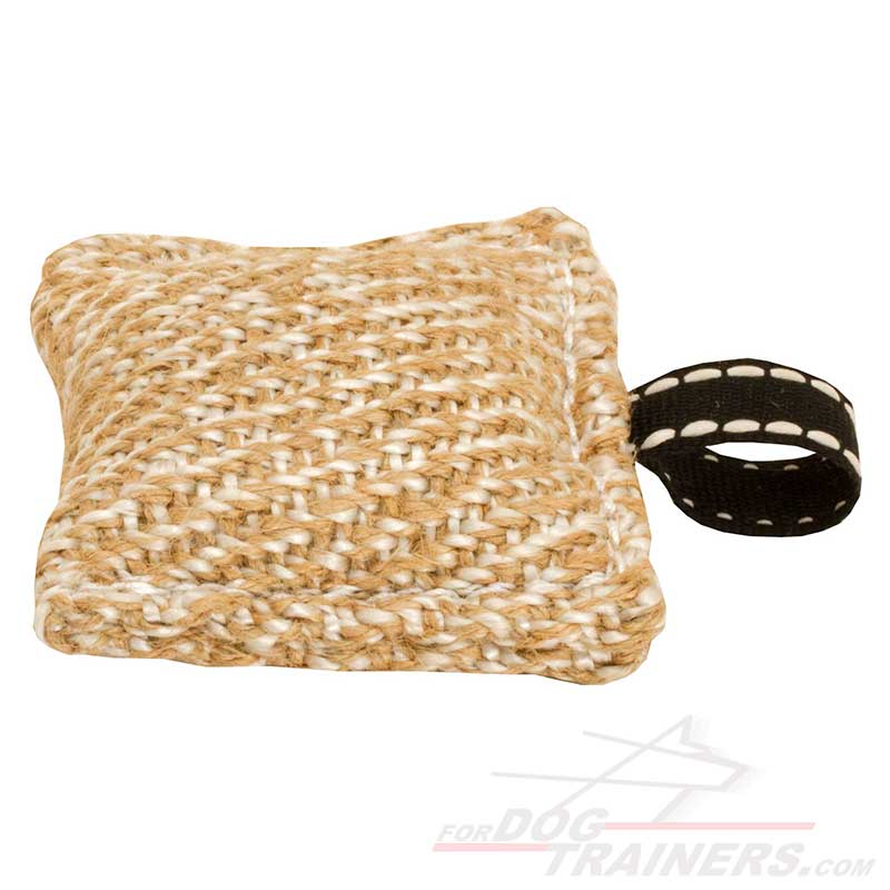 Pocket-Size Dog Bite Tug that is very comfortable and transportable due to its sizes. It is made in a form of small pillow. It won't take much space in your bag, so you can take it with you and continue your puppy's training wherever you will be.